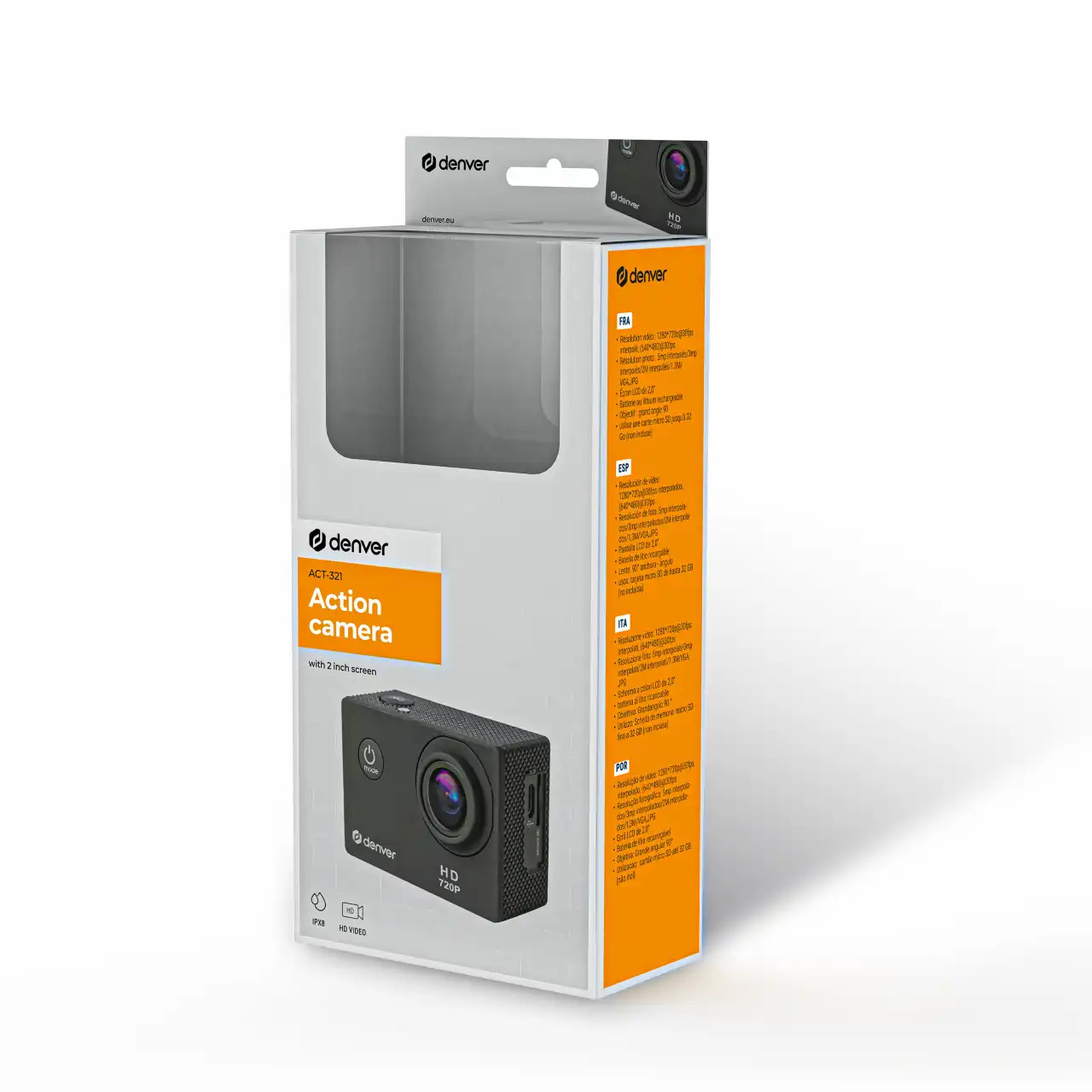 Denver ACT-321, HD, 0,3 MP, CMOS, 30 pps, 150 mAh, 285 g