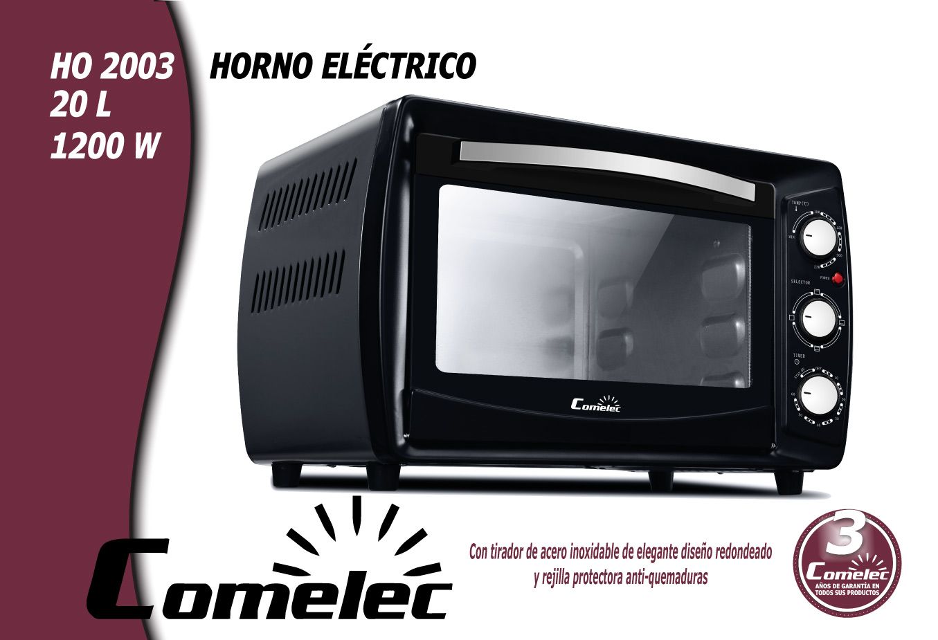 Comelec Horno eléctrico. Capacidad neta del horno: 20 L, Color del producto: Negro, Tipo de instalación: Encimera. Potencia de horno: 1200 W, Carga conectada: 1200 W, Voltaje de entrada AC: 220 -240 V