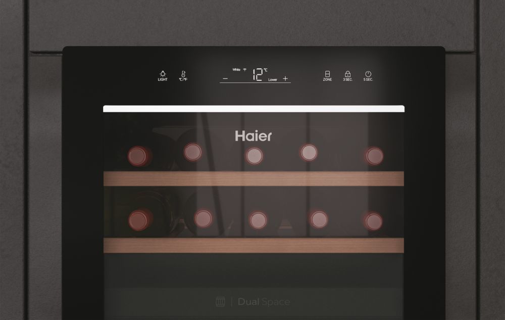 Haier Wine Bank 50 Serie 7 HWS42GDAU1. Tipo de instalación: Independiente, Color de la carcasa: Negro, Color interior: Negro. Capacidad (botellas): 42 botella(s), Tipo de producto: Nevera de vino, Rango de temperatura (zona 1): 5 - 20 °C. Clase de eficiencia de energía: G, Consumo de energía anual: 142 kWh, Escala de eficiencia energética: De la A a la G. Tipo de control: Tocar, Tipo de visualizador: LED, Tipo de lámpara: LED. Ancho: 497 mm, Profundidad: 585 mm, Altura: 820 mm